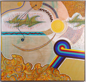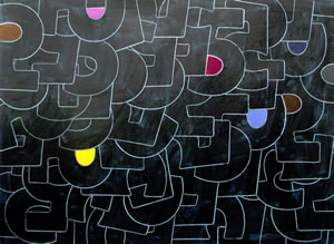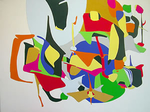 The three painters in this show, each with his or her own distinct style, have never shown together before. This marks the first time Charles Ladson and Sherry Sanabria have shown at this gallery. The common binder in this show is that each painter employs structures--some recognizable and some not--in his or her work.