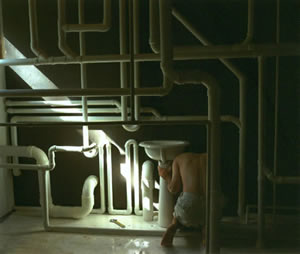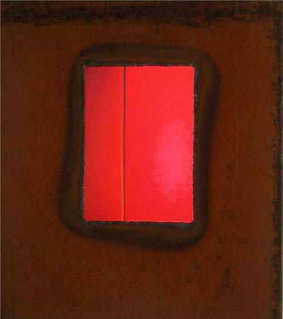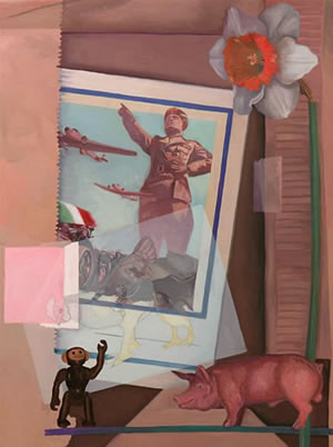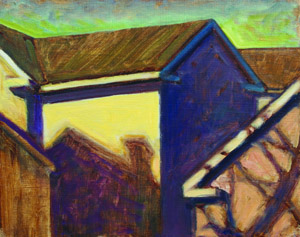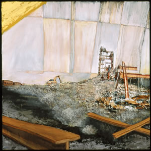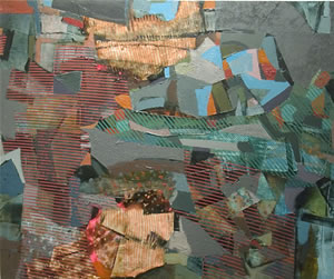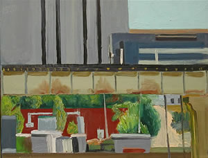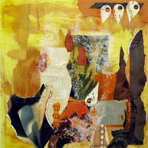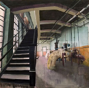 Luke Buchanan, who has been in thee group shows here prior to this exhibition, graduated from the College of Design at NCSU in 2002 with a degree in environmental design and architecture. He was born in Morristown, N.J., and moved to Raleigh with his parents when he was 8 years old. He graduated from Enloe High School. Buchanan's paintings deal primarily with space and the history of place. He uses a photomontague technique in building his paintings and often incorporates objects found at the site in his works.