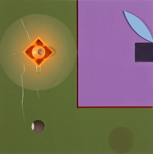 in which he isolates a single realistic object or image over a background