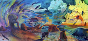 Robinson, a Texas native, is first and foremost a colorist. Her work is most assuredly about the expression of vivid color and its power to evoke feeling, and this, along with her signature expressive brushwork provides a language for Charlotte's artistic comments on the environment and man's relationship to it.