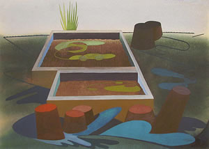 Maud Gatewood (1934-2004) was a major figure on the art scene in North Carolina in the second half of the 20th century. She is known for her patterned landscapes in rural settings. This exhibition focuses on her works on paper--watercolors, drawings, prints and oil on paper. Gatewood was born in Yanceyville in Caswell County. She taught at Queens College in Charlotte and at Averett University in Danville, VA. Her works are in a number of museum collections in North Carolina and the studio art building at UNC-Greensboro is named for her.