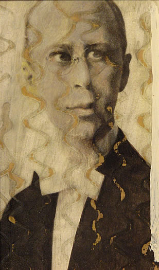 collage, acrylic and oil on wood